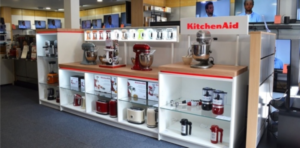 The image shows a heat map being used within retail, to confirm that the new KitchenAid Stand Mixer in the colour of year, Hibiscus, is positioned in the best location to draw customers in within the shop fit out.